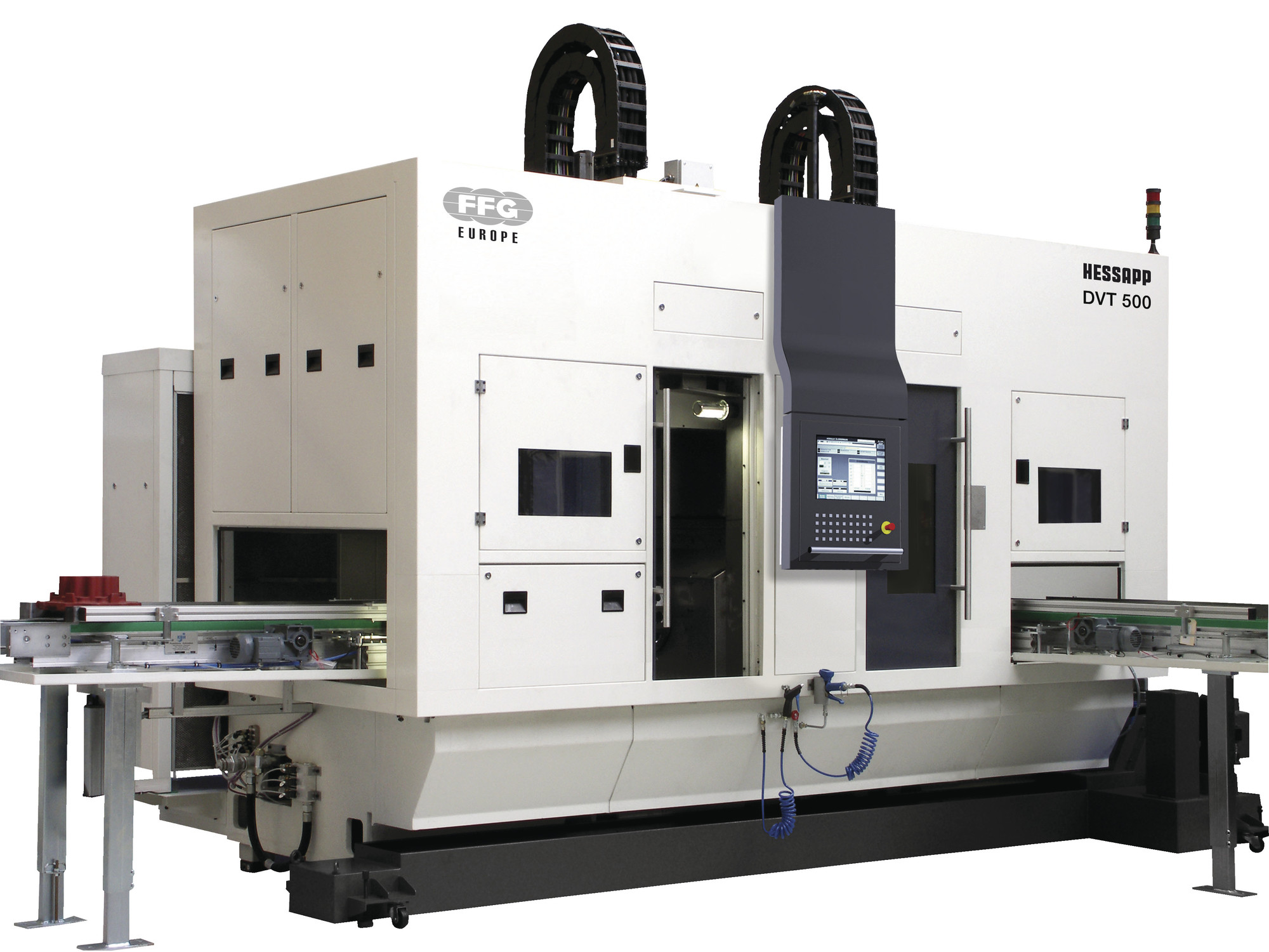 Torni verticali a doppio mandrino con sistema automatico di carico scarico e transferimento dei particolari. Il design brevettato per la lavorazione completa senza compromessi, combinato con la massima precisione. Quasi due decenni di esperienza hanno perfezionato il sistema DVT rendendolo ineguagliabile tra i sistemi presenti sul mercato. Quando si cerca un elevata precisione in una presa dopo l'altra, in particaolare, gli vantaggi sono significativi, perche il pezzo viene trasferito al mandrino succesivo senza perdere la sua posizione. La serie DVT presenta vantaggi anche dal punto di vista ergonomico, con un design compatto, grande porte e vetri per un faccile setup